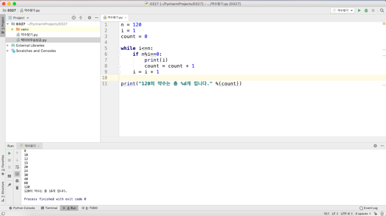 문제는 120의 약수지만 풀때는 결과값이 바로바로 나오도록 8의 약수를 뽑아내는 것으로 구상하였다.